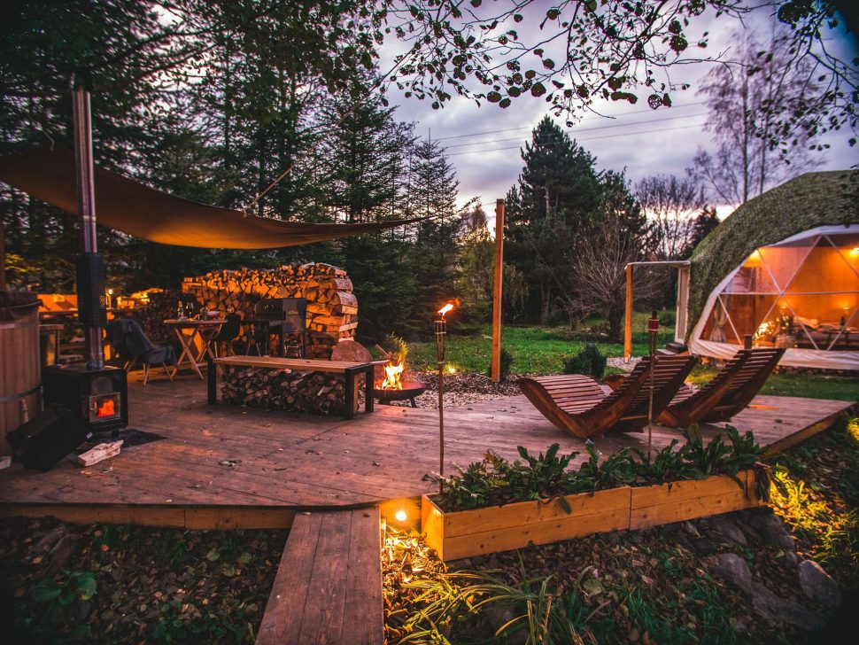 The atmosphere of spending the night in a glamping tent is a unique experience. You can enjoy swimming in a hot barrel or sauna.